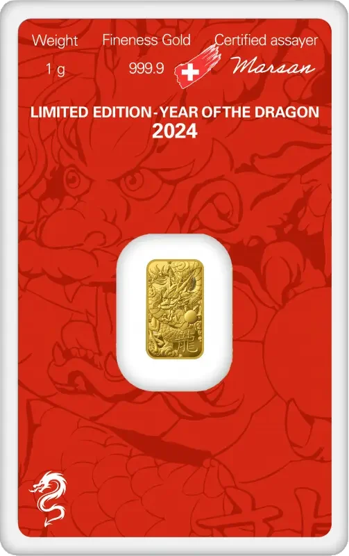 Investiční zlato – zlatý slitek 1g Argor Heraeus SA Year of the Dragon (Rok draka) 2024 Limited Edition
