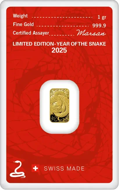 Investiční zlato – zlatý slitek 1g Argor Heraeus SA Year of the Snake (Rok hada) 2025 Limited Edition