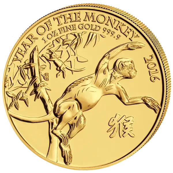 Lunární série – zlatá mince 100 Pounds Year of the Monkey (Rok opice) 1 Oz 2016 (Royal Mint)