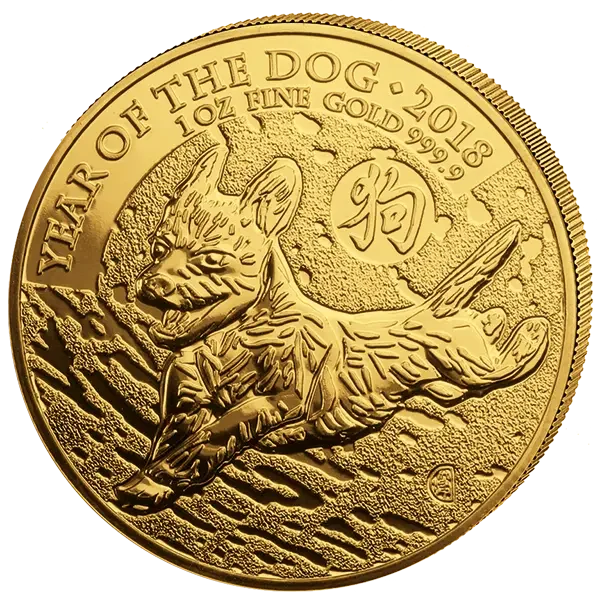 Lunární série – zlatá mince 100 Pounds Year of the Dog (Rok psa) 1 Oz 2018 (Royal Mint)