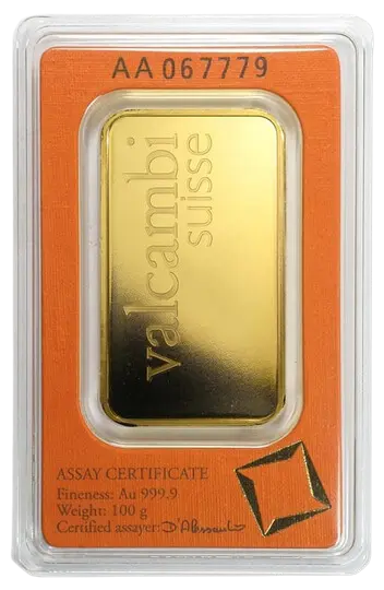 Investiční zlato – zlatý slitek 100g Valcambi SA