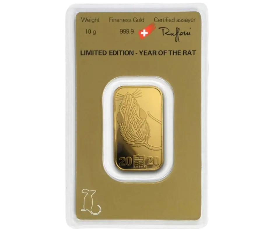 Investiční zlato – zlatý slitek 10g Argor Heraeus SA Year of the Rat (Rok krysy) 2020 Limited Edition