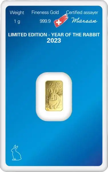 Investiční zlato – zlatý slitek 1g Argor Heraeus SA Year of the Rabbit (Rok králíka) 2022 Limited Edition