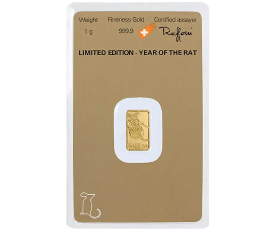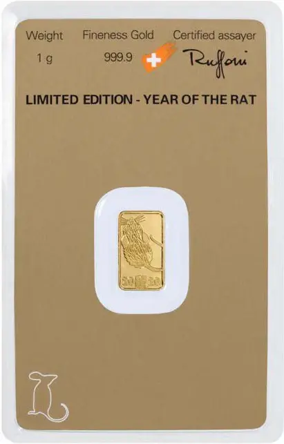 Investiční zlato – zlatý slitek 1g Argor Heraeus SA Year of the Rat (Rok krysy) 2020 Limited Edition