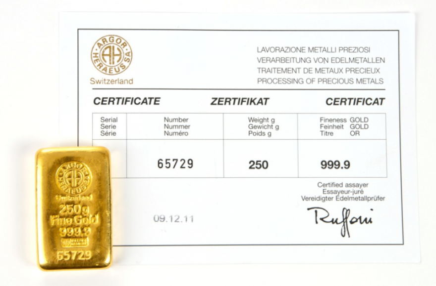 Investiční zlato – zlatý slitek 250g Argor Heraeus SA