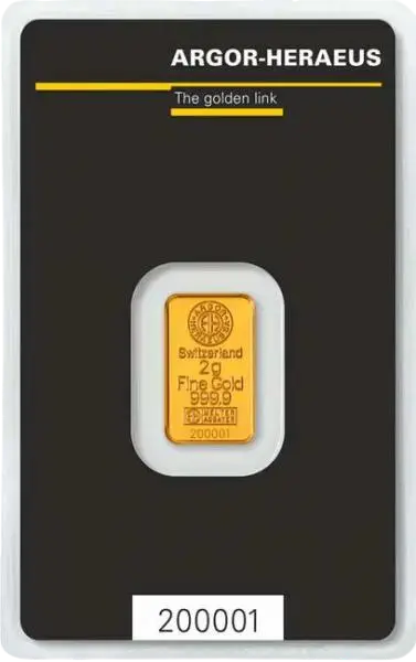 Investiční zlato – zlatý slitek 2g Argor Heraeus SA