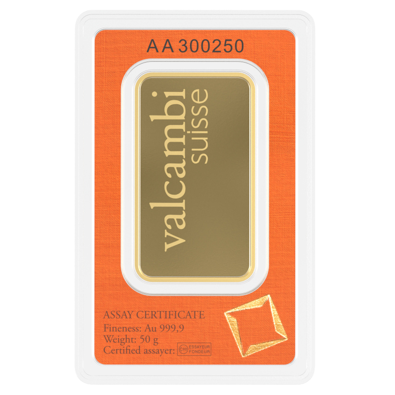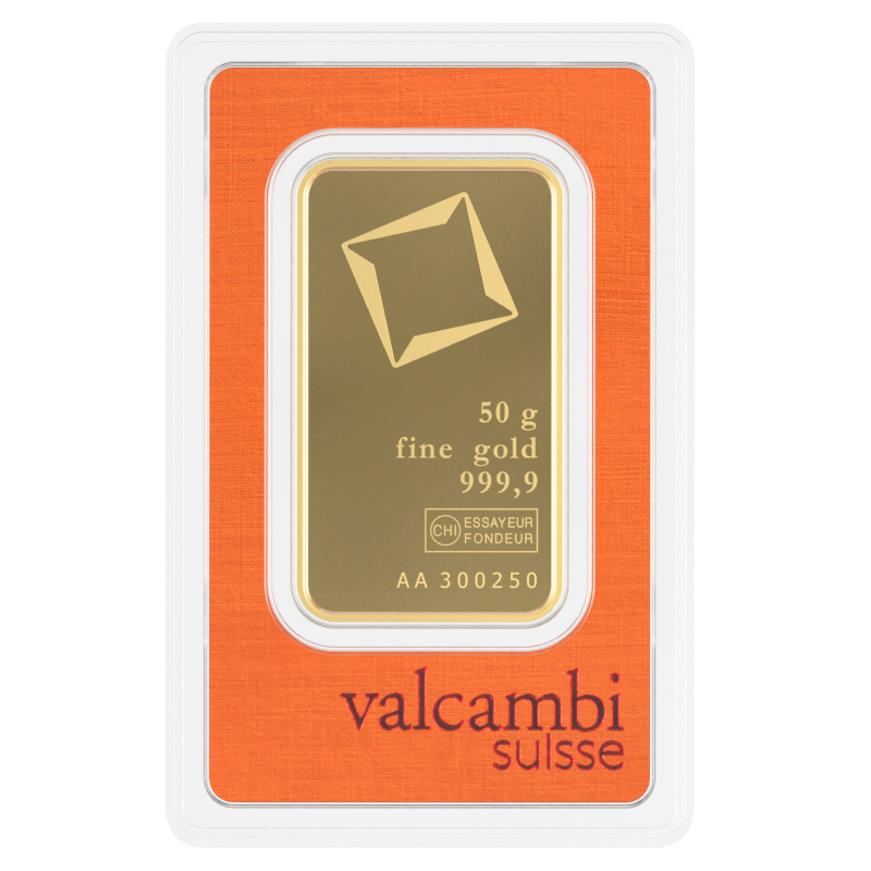 Investiční zlato – zlatý slitek 50g Valcambi SA