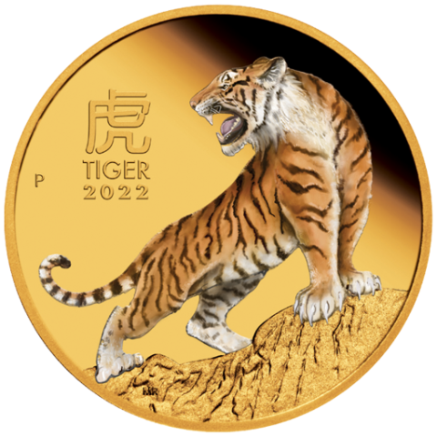 Australian Lunar Series III – Year of the Tiger – 2022 1 Oz Gold – Proof – Color