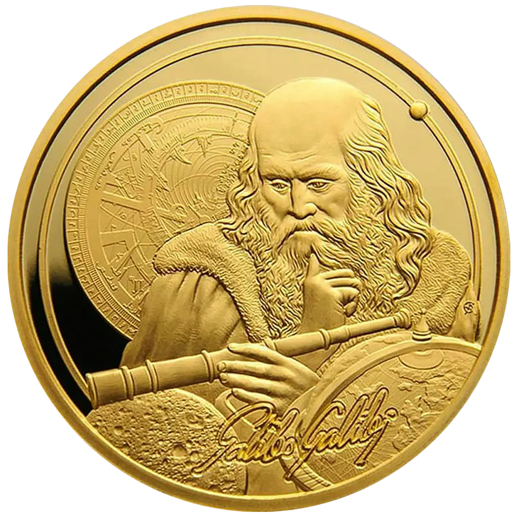 Exkluzivní zlatá mince Galileo 1 Oz 2021 (Icons of Inspiration) – (1.)