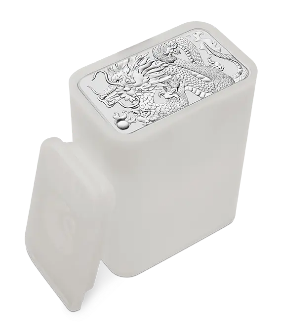 série obdélníkových bullion mincí s motivem draka a je ideální investiční příležitostí do stříbra.