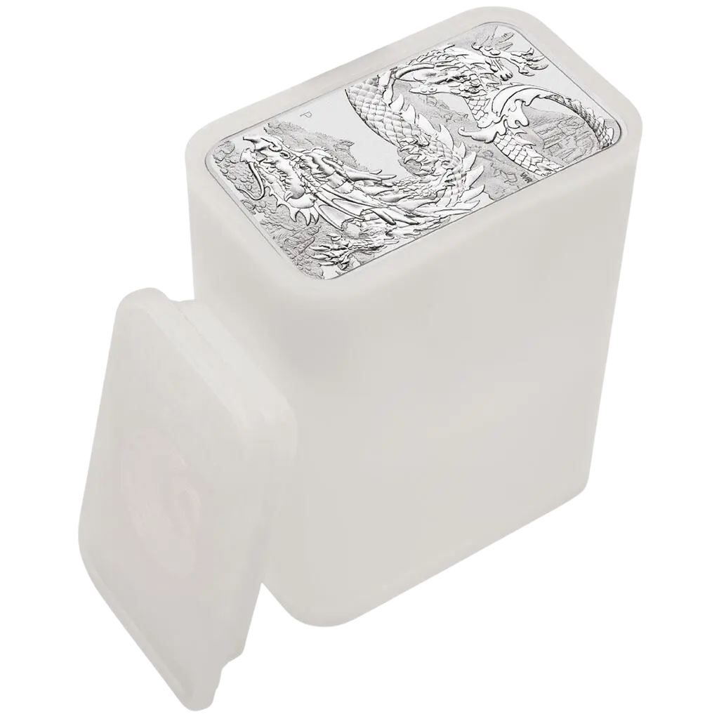 série obdélníkových bullion mincí s motivem draka a je ideální investiční příležitostí do stříbra.