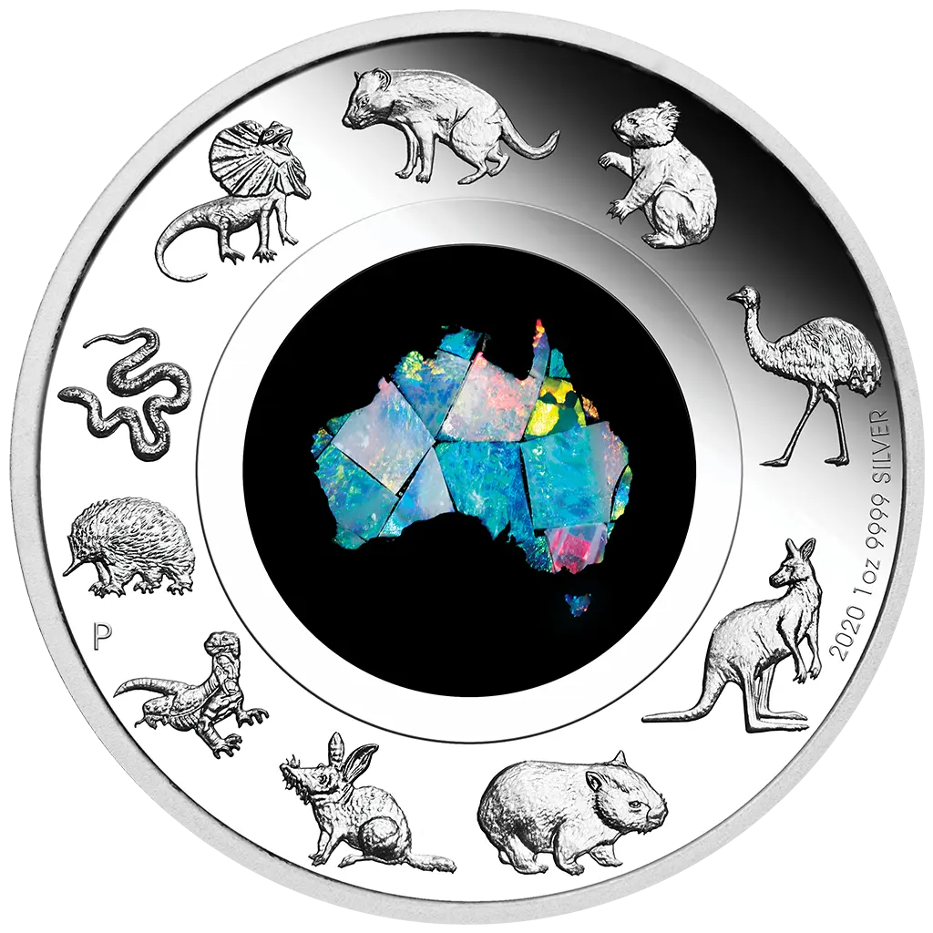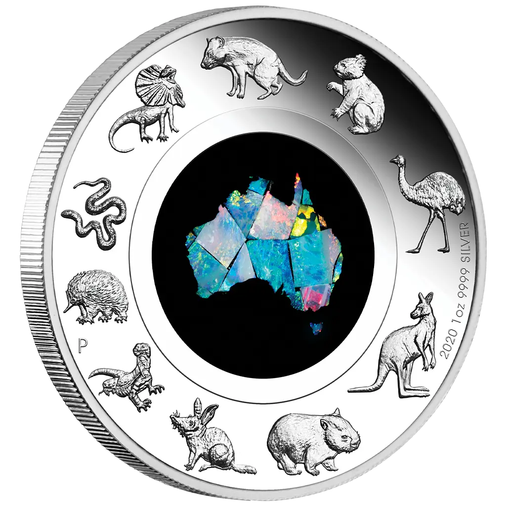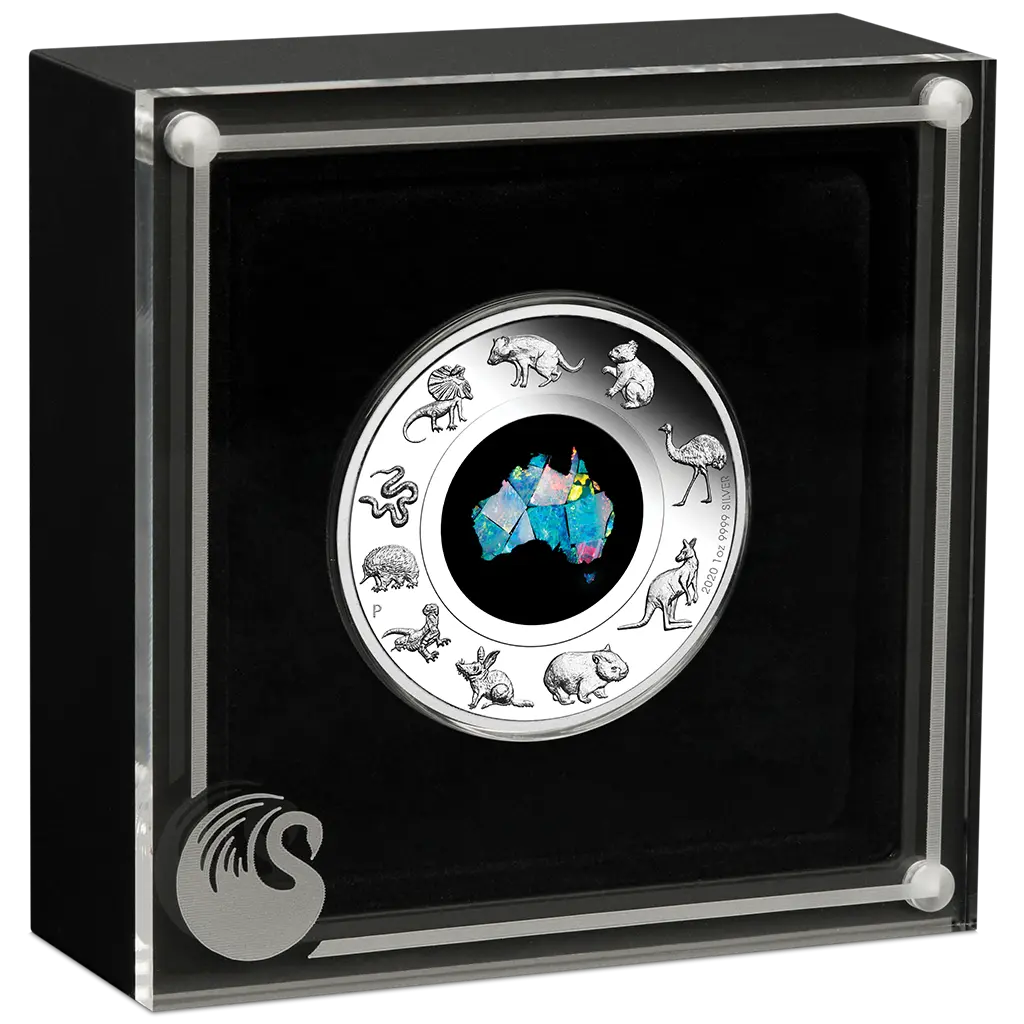 Limitovaná stříbrná mince „Great Southern Land“ se skutečným australským opálem je dodávána v původní krabičce, vč. číslovaného certifikátu pravosti od mincovny Perth.
