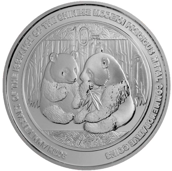 Stříbrná mince 10 Yuan China Panda 1 Oz 2009 30th Anniversary (30. výročí)
