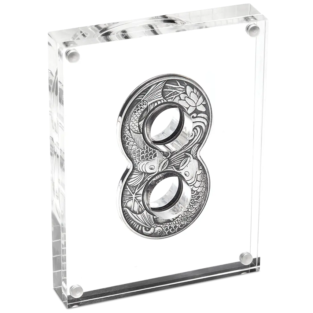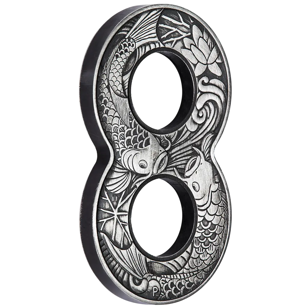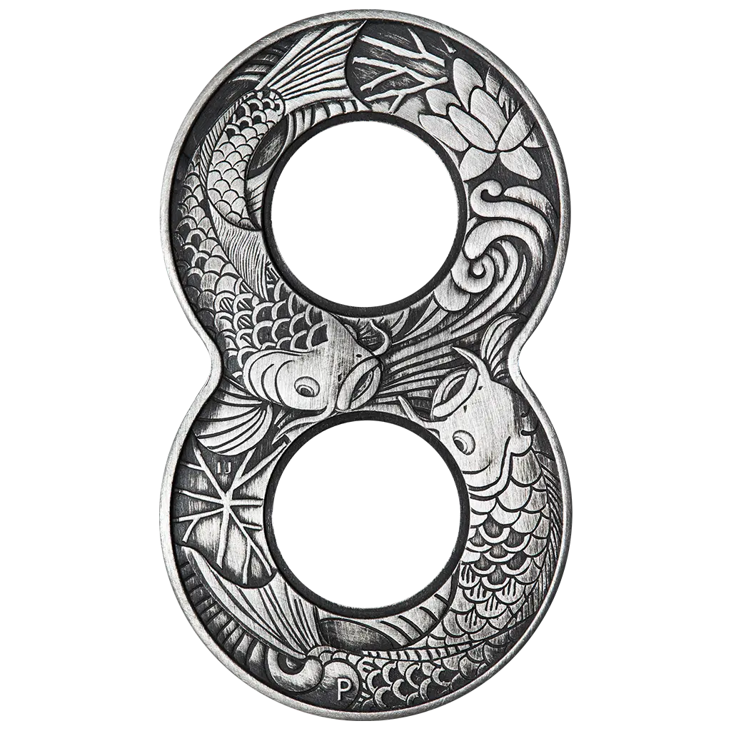 Druhá mince na světě ze série Figure Eight – Koi Fish má tvar osmičky, šťastného čísla se silnou