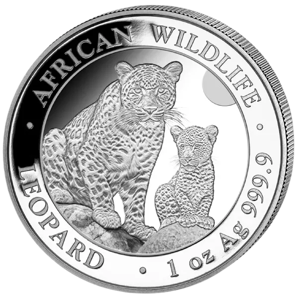 Stříbrná mince s motivem levharta z populární série African Wildlife byla vyražena z 99,99% ryzího stříbra