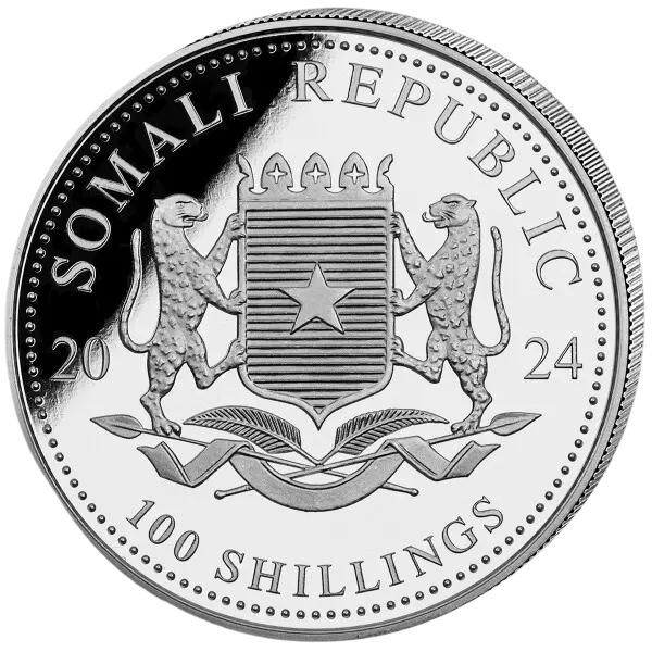 Zadní strana zobrazuje státní znak Somálské republiky, který obsahuje somálskou vlajku a dva levharty.