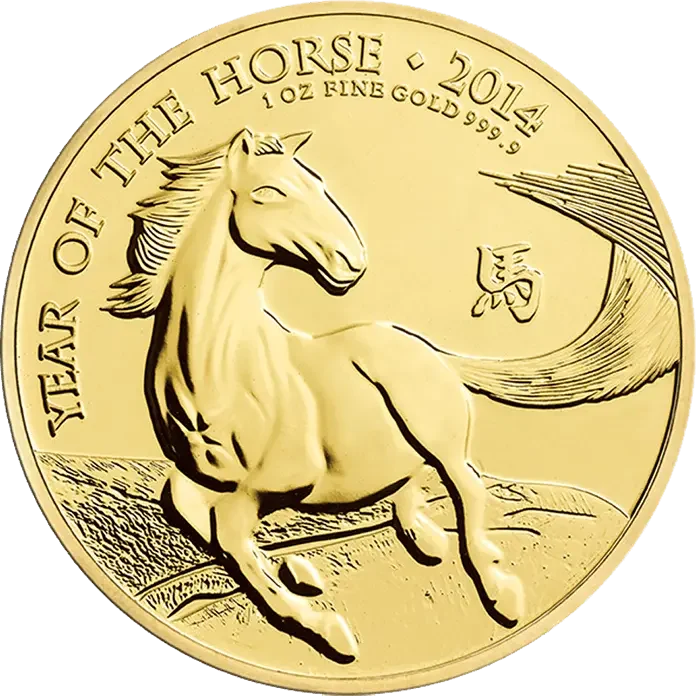 Lunární série – zlatá mince 100 Pounds Year of the Horse (Rok koně) 1 Oz 2014 (Royal Mint)