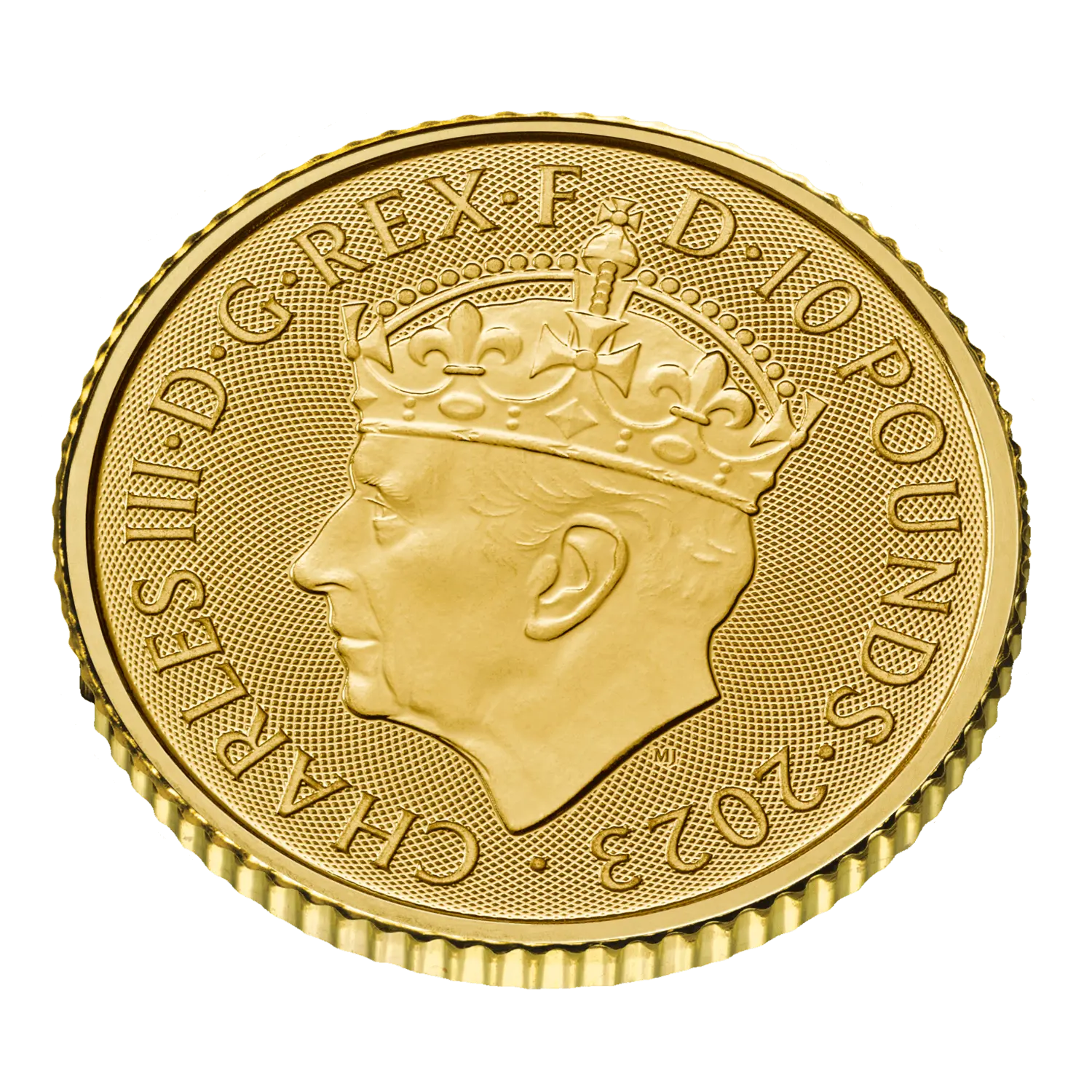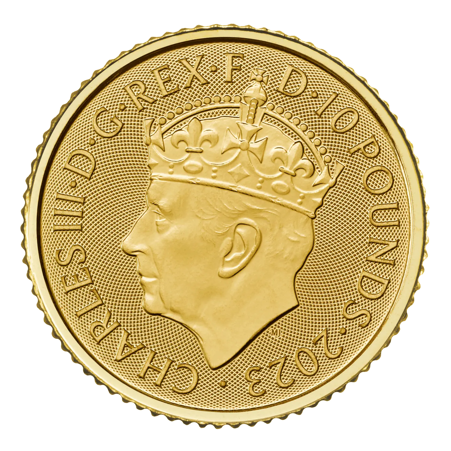 Zlatá mince 10 Pounds Royal Cypher 1/10 Oz 2023 – Král Karel III. – Korunovace (King Charles III. Coronation)