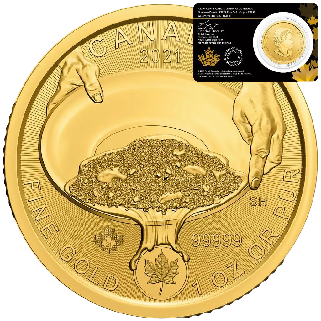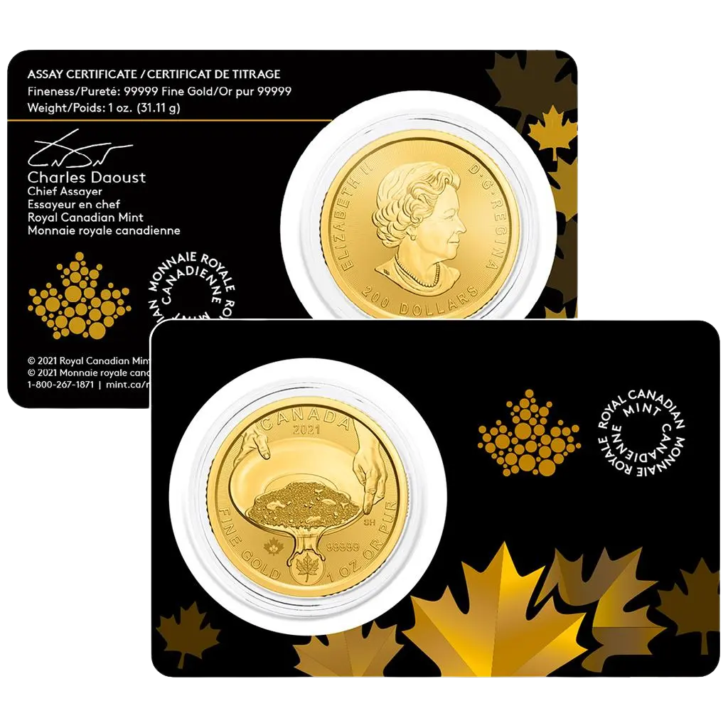 Zlatá mince 200 CAD Klondike Gold Rush – Panning for Gold (Rýžování zlata) 1 Oz 2021 (.99999) karta