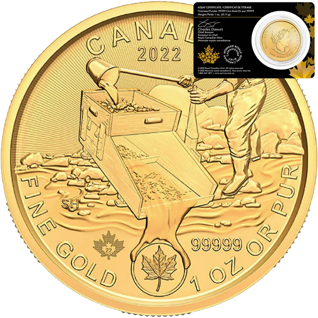 Zlatá mince 200 CAD Klondike Gold Rush – Prospecting for Gold (Hledání zlata) 1 Oz 2022 (.99999) karta