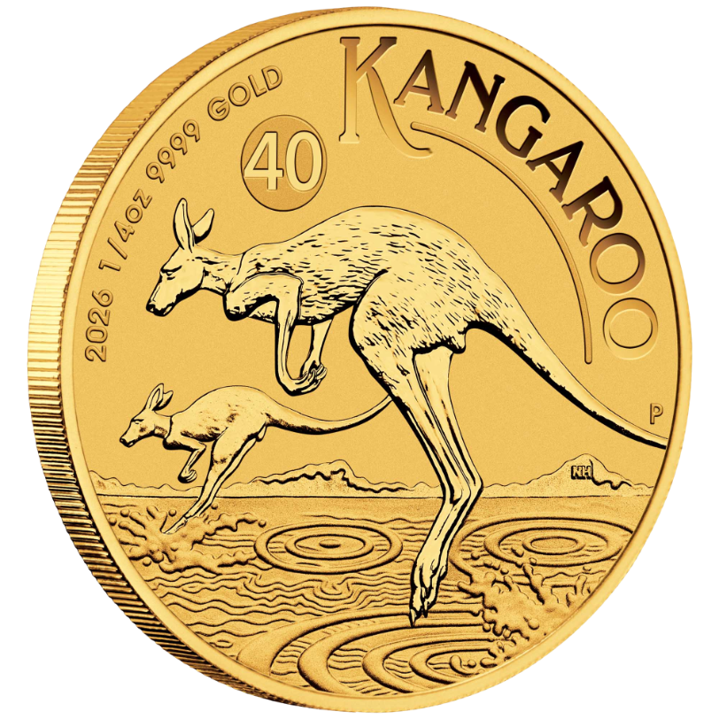 Zlatá mince 25 AUD Australian Kangaroo (Klokan rudý) 1/4 Oz 2026 (40. výročí)