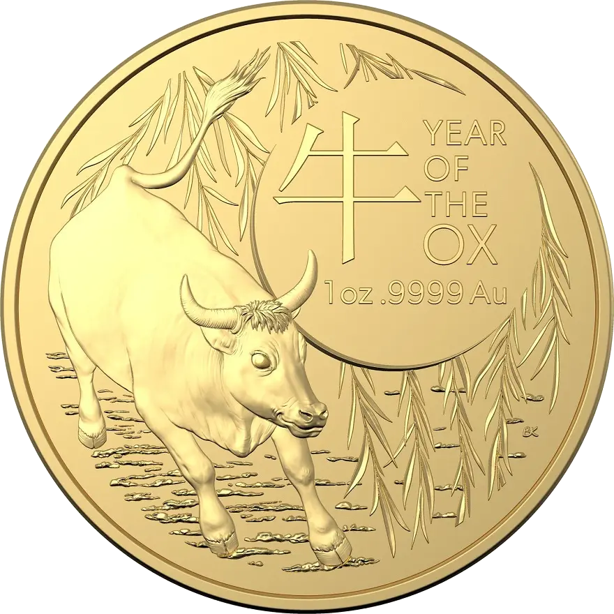Zlatá mince Lunární série Year of the Ox (Rok buvola) 1 Oz 2021 (Lunar RAM)