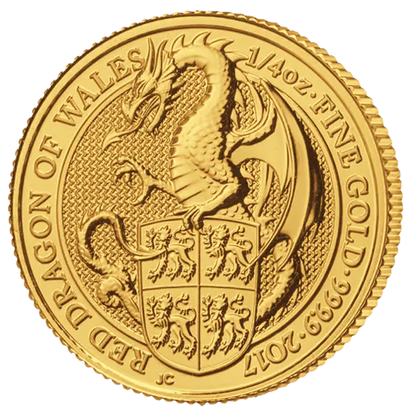 Zlatá mince The Queen’s Beasts The Red Dragon of Wales 1/4 Oz 2017