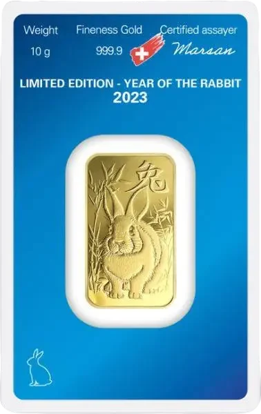 Investiční zlato – zlatý slitek 10g Argor Heraeus SA Year of the Rabbit (Rok králíka) 2023 Limited Edition