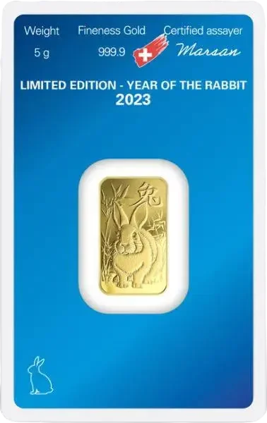 Investiční zlato – zlatý slitek 5g Argor Heraeus SA Year of the Rabbit (Rok králíka) 2023 Limited Edition