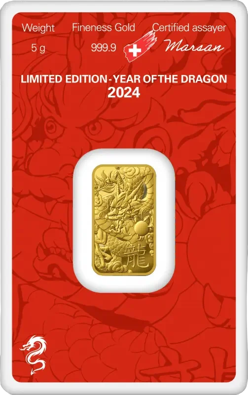 Investiční zlato – zlatý slitek 5g Argor Heraeus SA Year of the Dragon (Rok draka) 2024 Limited Edition