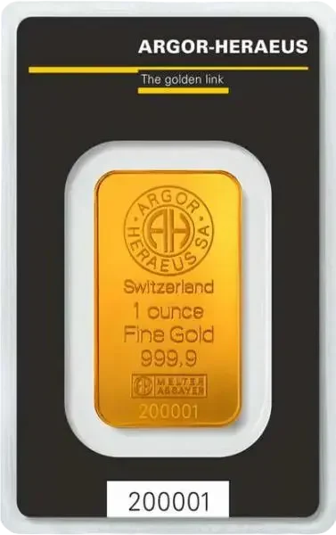 Investiční zlato – zlatý slitek 1 Oz Argor Heraeus SA