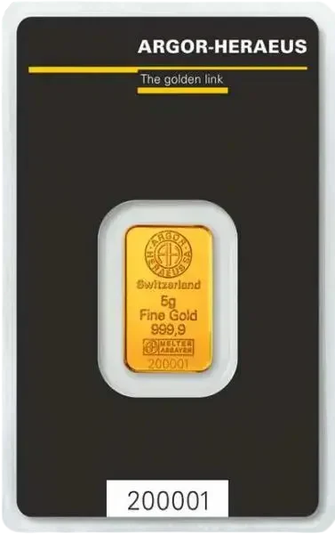 Investiční zlato – zlatý slitek 5g Argor Heraeus SA