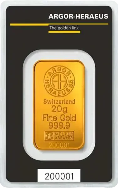Investiční zlato – zlatý slitek 20g Argor Heraeus SA