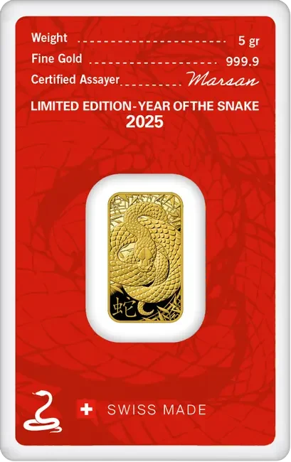 Investiční zlato – zlatý slitek 5g Argor Heraeus SA Year of the Snake (Rok hada) 2025 Limited Edition