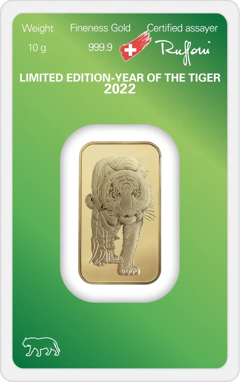 Investiční zlato – zlatý slitek 10g Argor Heraeus SA Year of the Tiger (Rok tygra) 2022 Limited Edition